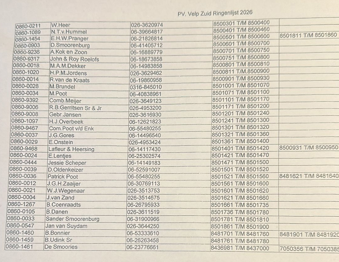Ringenlijst 2026